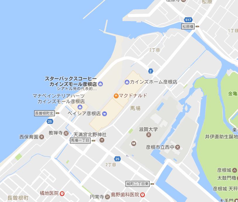彦根城からは直線距離で1700mと少し離れていますが、こちらで買い物&駐車した上で、そらを見上げるのもええかと。